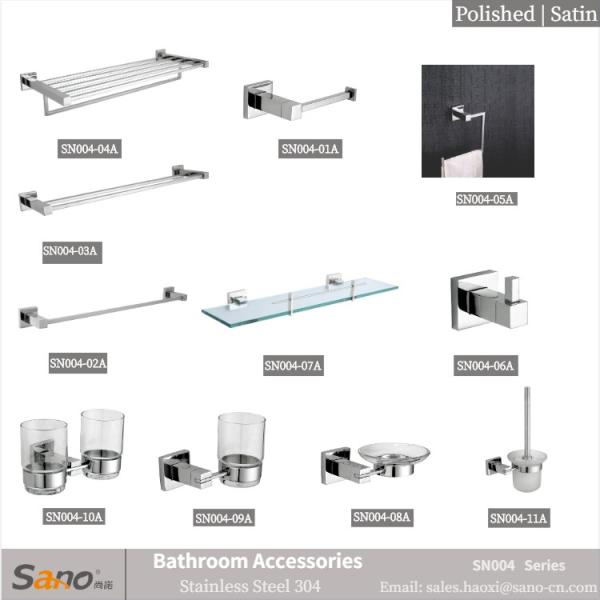 This series includes the toilet paper holder, single towel bar, double towel bar, towel rack, towel ring, robe hook, single tumbler holder, double tumbler holder, soap dish holder type A and type B, glass shelf, toilet brush holder, totally 11 pieces in a set, which can be purchased separately.